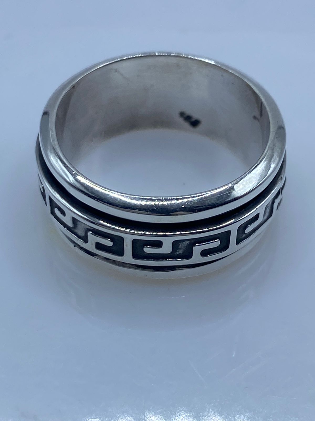 🏛️💍 Anillo Spinner de Plata .925 con Greca Clásica Oscurecida