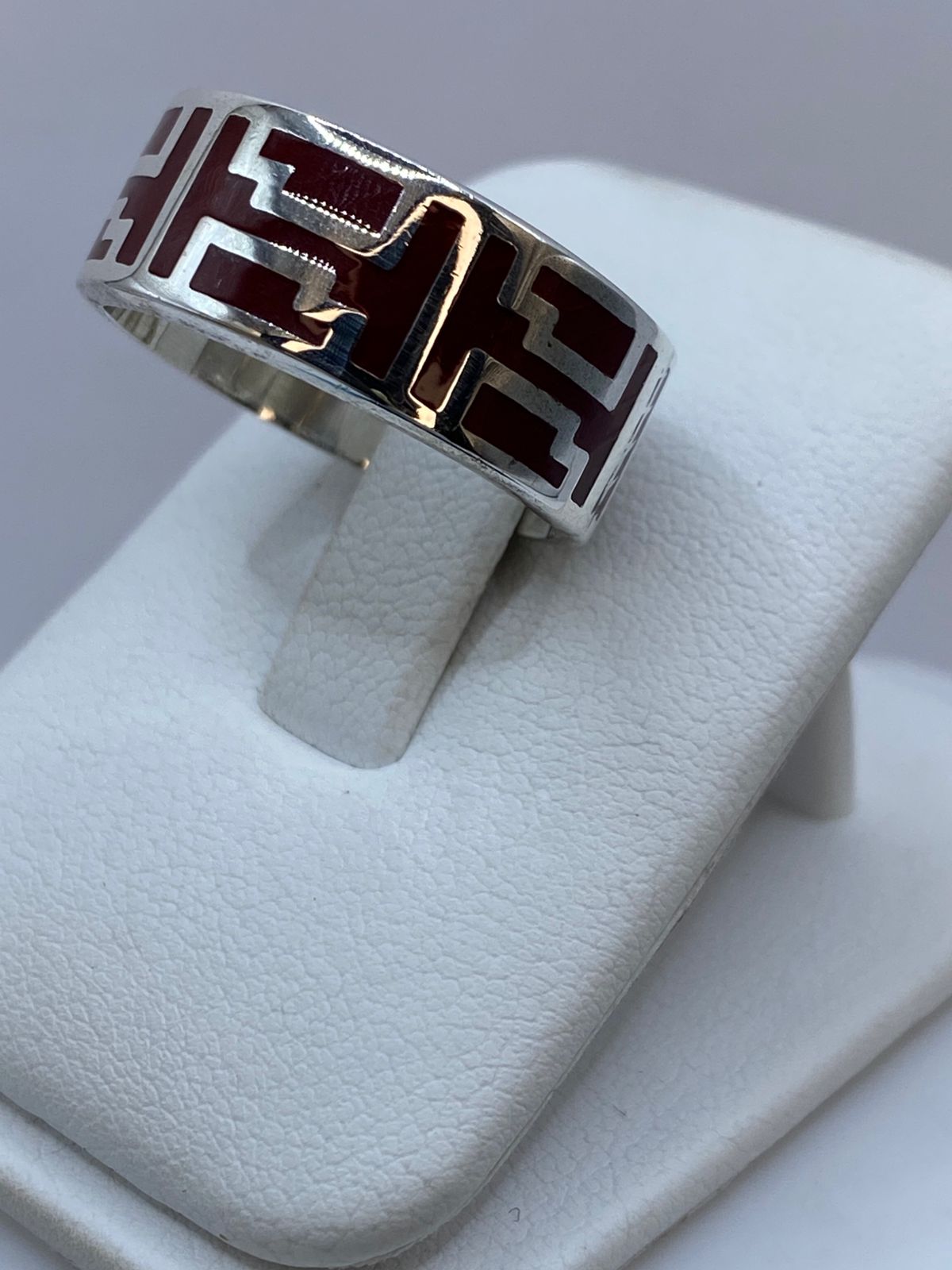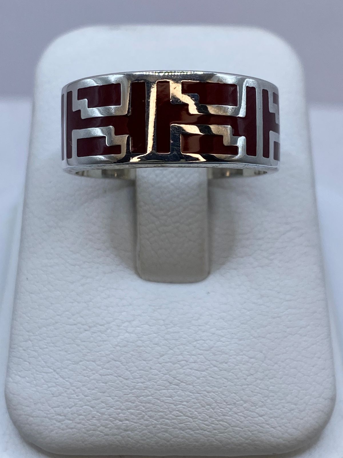 Este anillo combina la intensidad vibrante del coral rojo natural con una greca geométrica en relieve trabajada en plata .925 🪙. El contraste entre el rojo profundo y el brillo del metal crea una estética sofisticada, firme y contemporánea.