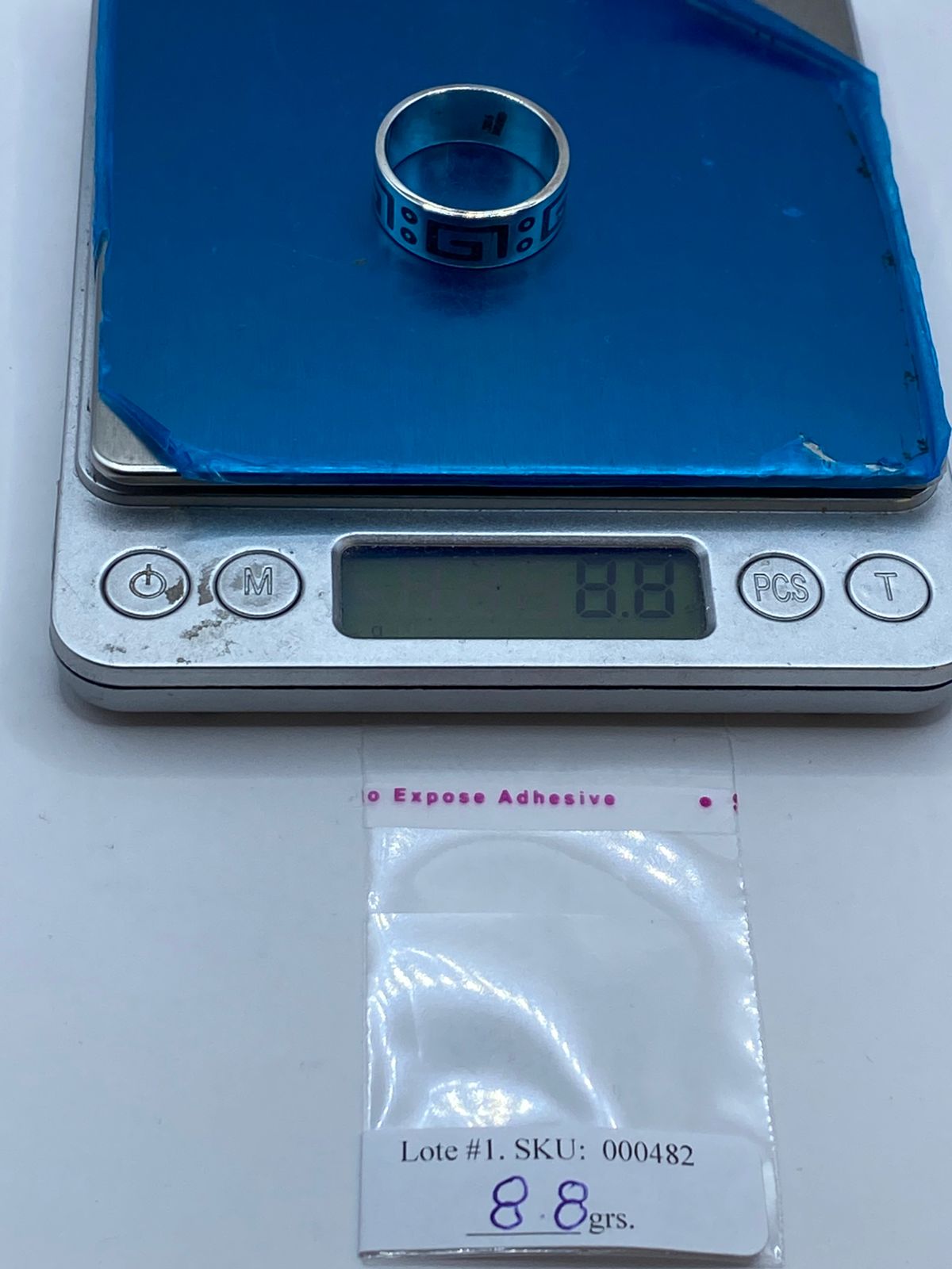 Este anillo combina la intensidad vibrante de la turquesa natural con una greca geométrica en relieve y detalles circulares que aportan ritmo visual y equilibrio 🪙💙.