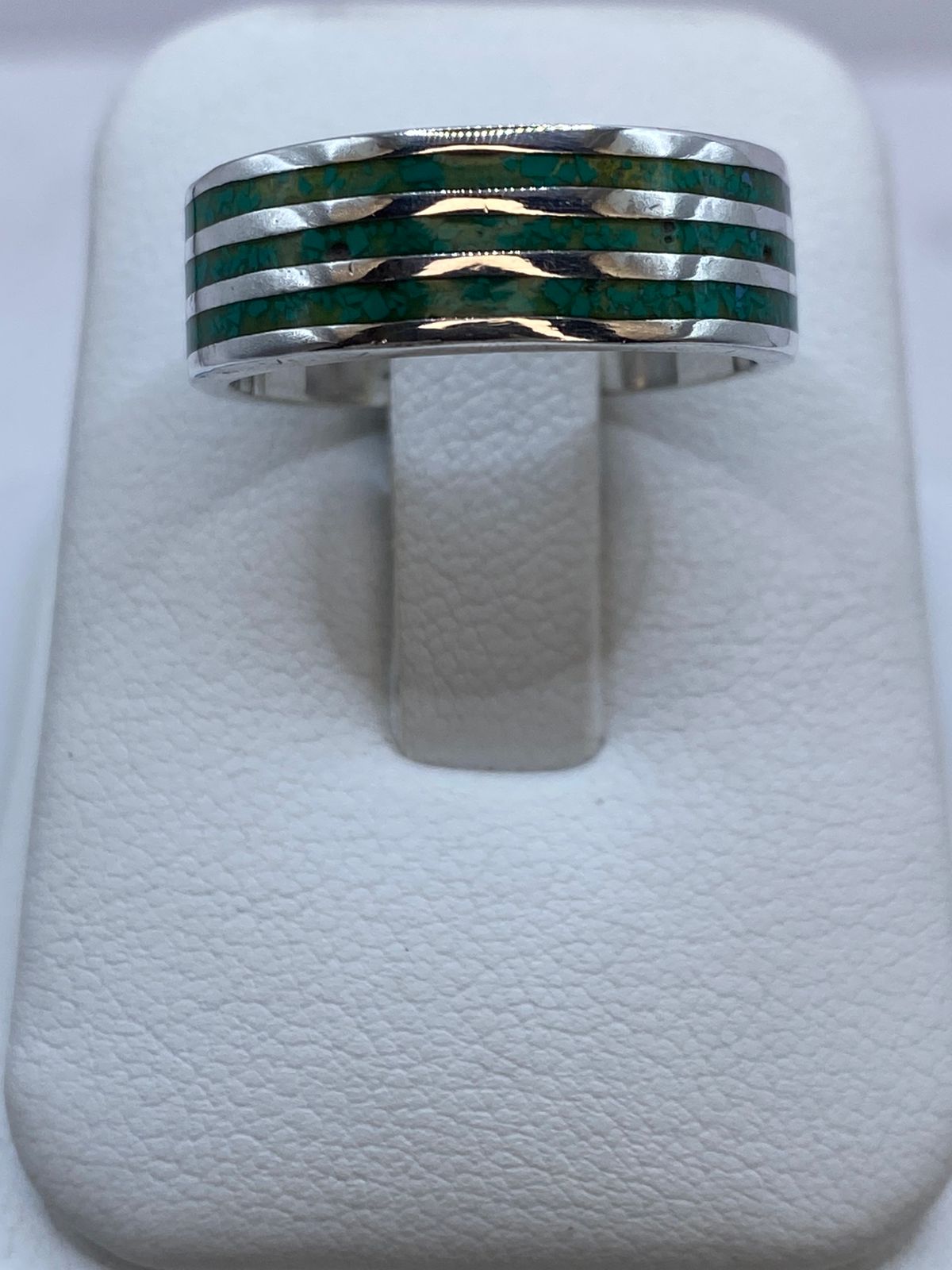 ✨ Acabado: Pulido espejo con incrustación verde vibrante
