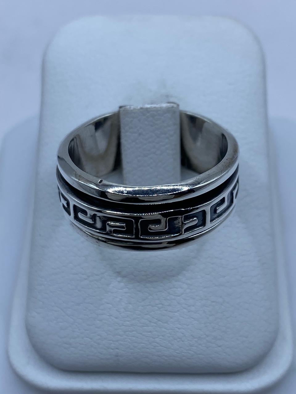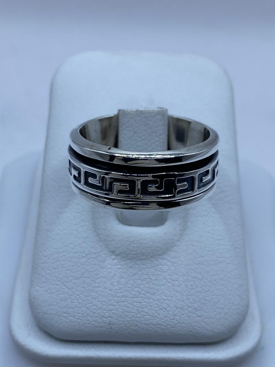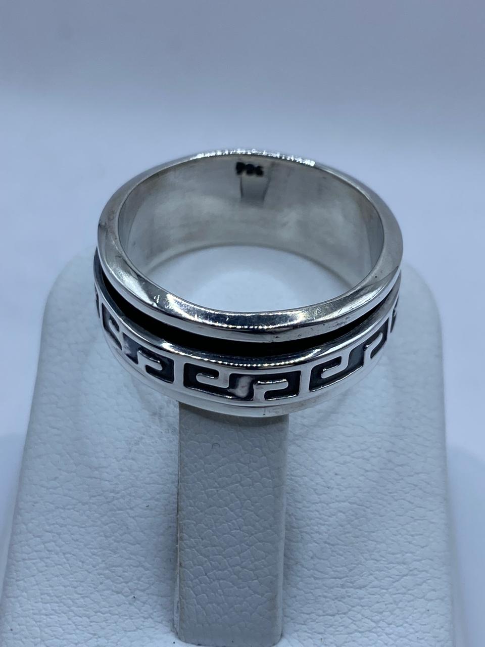 Este sofisticado anillo giratorio de plata 925 destaca por su diseño geométrico inspirado en el clásico patrón griego 🔷✨, símbolo de eternidad, equilibrio y continuidad.