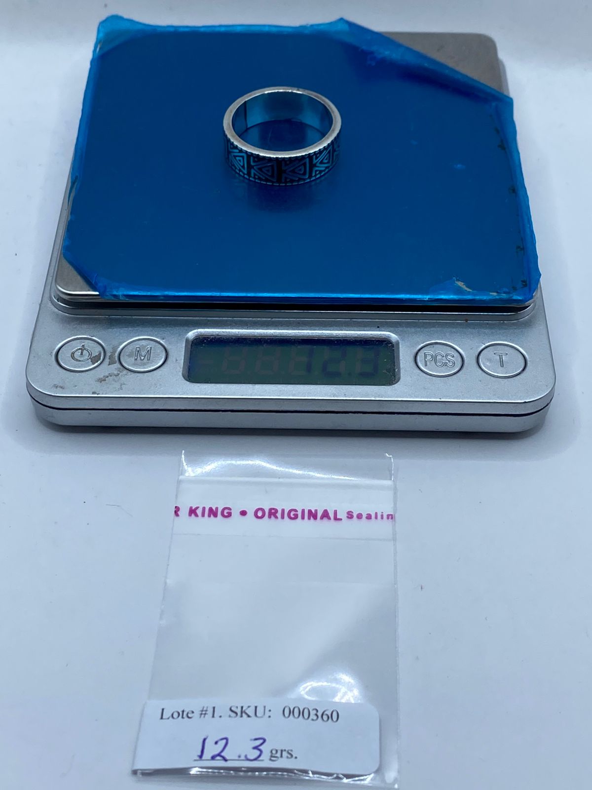 Esta pieza en plata .925 presenta un diseño geométrico de triángulos repetidos, cuidadosamente calado a mano con segueta, una técnica tradicional de la platería taxqueña que requiere precisión absoluta y gran destreza artesanal ✂️.
