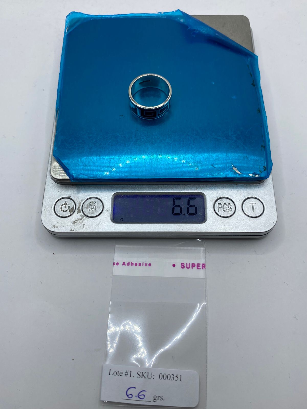 Este anillo de plata .925 presenta una greca geométrica de líneas rectas y modernas, cuidadosamente calada a mano con segueta, técnica tradicional de la platería taxqueña que requiere precisión y dedicación ✂️🏛️.