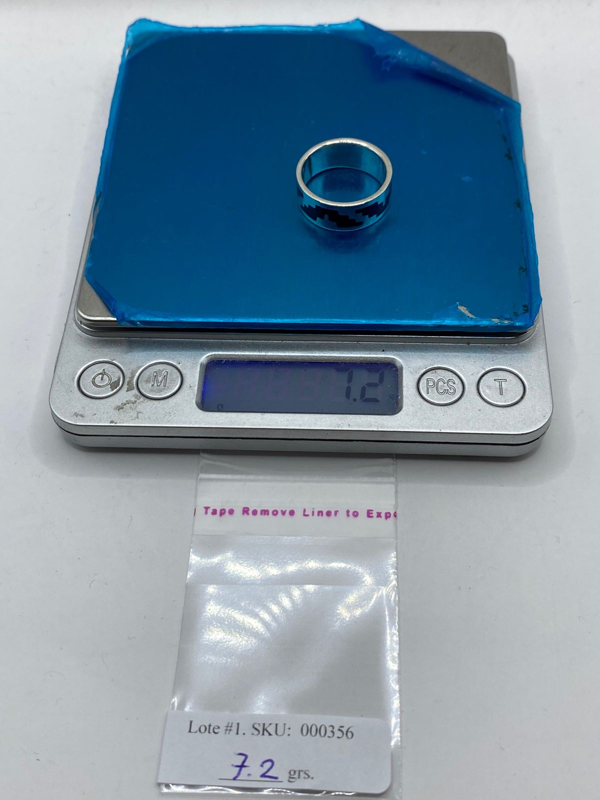 Este anillo de plata .925 presenta un patrón geométrico de inspiración prehispánica, evocando símbolos tradicionales que representan fuerza, identidad y conexión cultural 🏛️♾️.