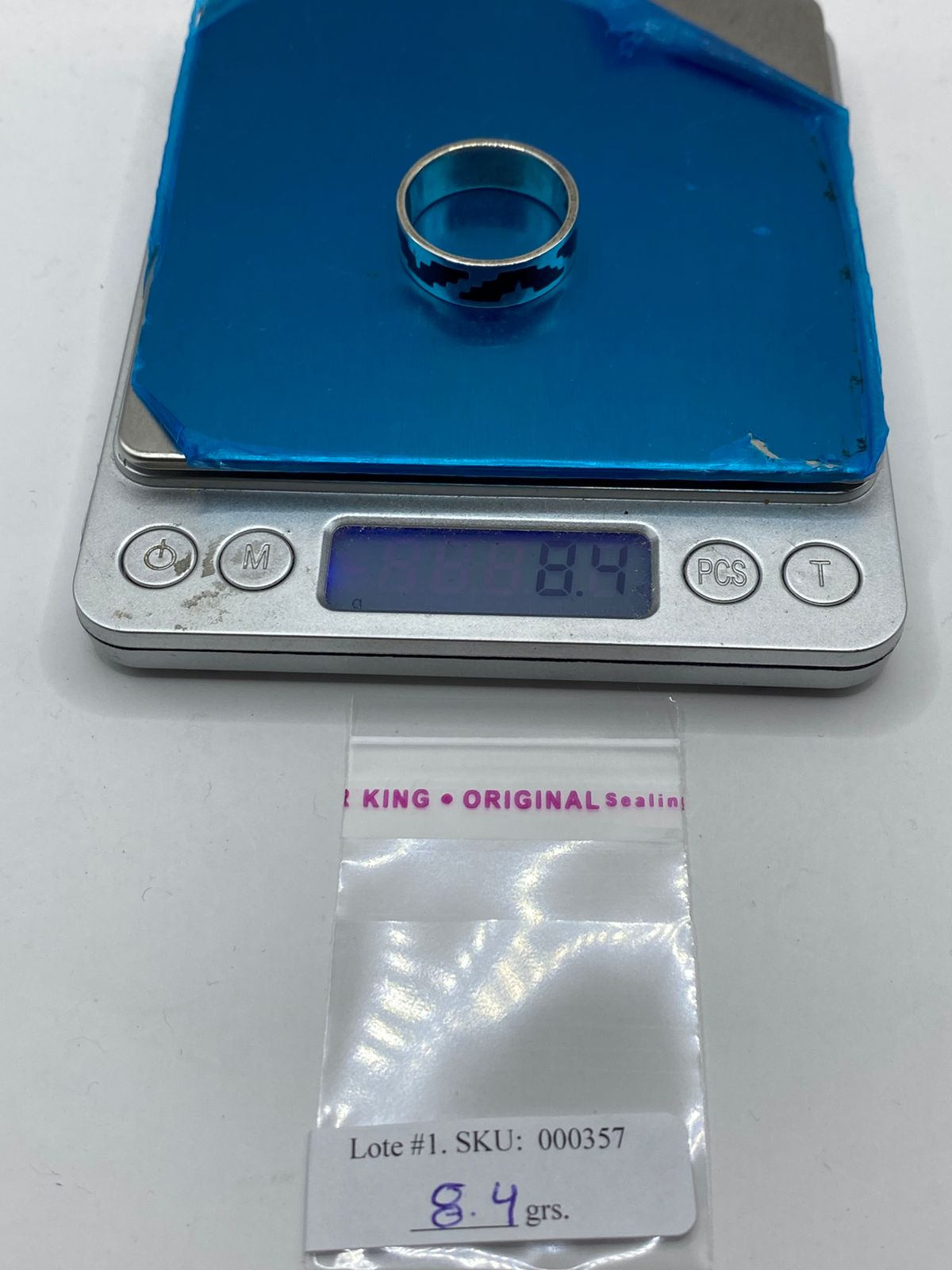Este anillo de plata .925 presenta un patrón geométrico de inspiración prehispánica, evocando símbolos tradicionales que representan fuerza, identidad y conexión cultural 🏛️♾️.