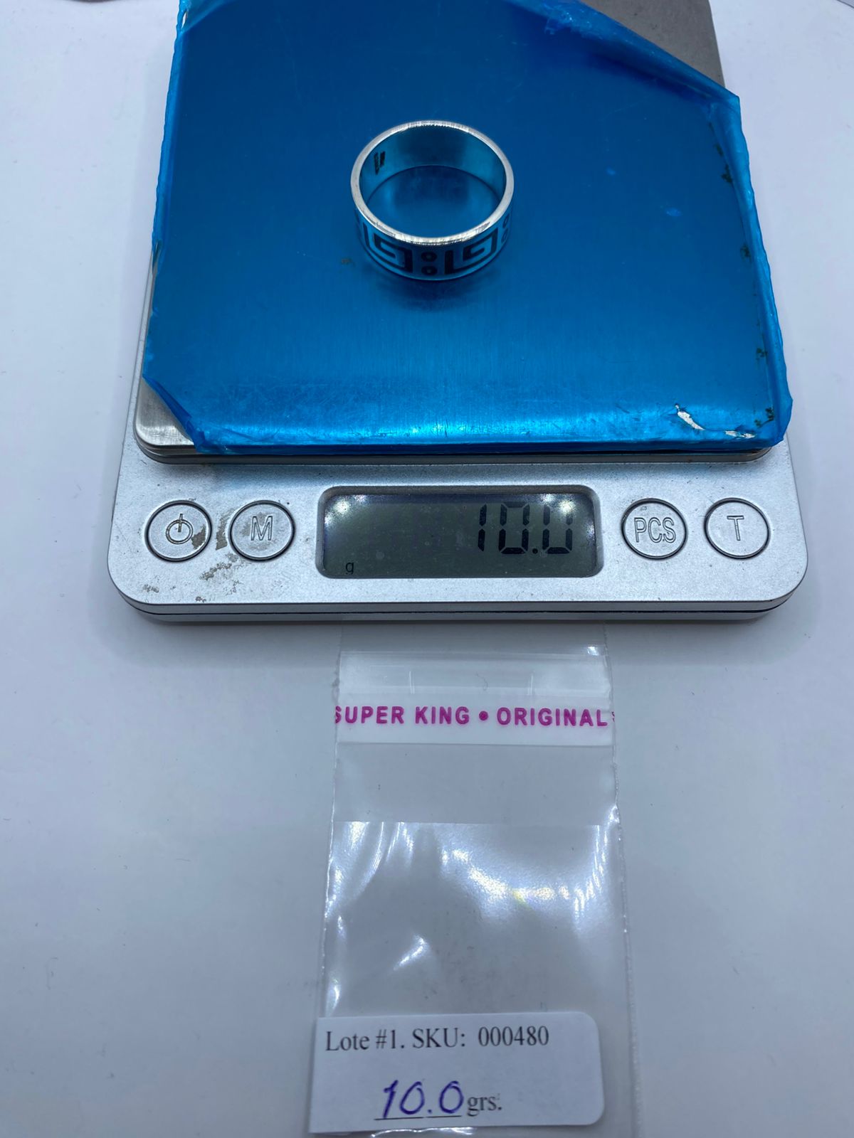 Este anillo combina la intensidad vibrante de la turquesa natural con una greca geométrica en relieve y detalles circulares que aportan ritmo visual y equilibrio 🪙💙.