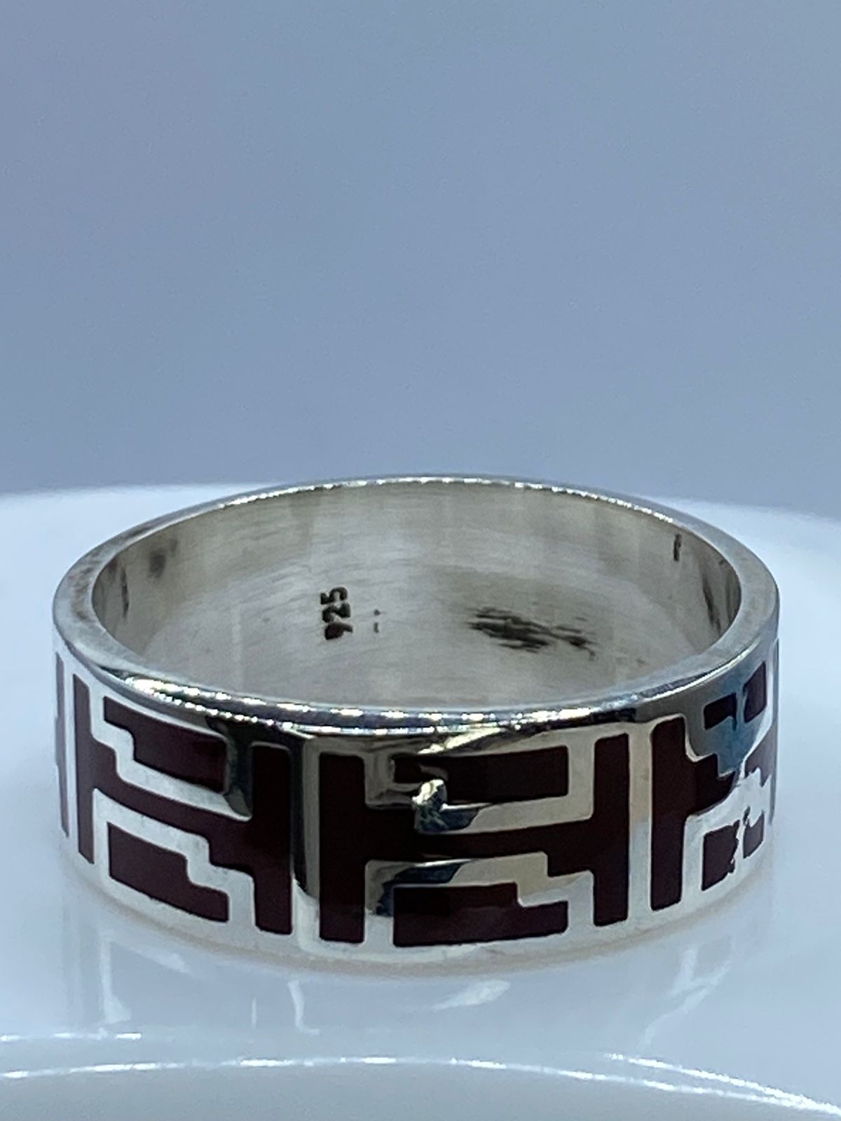Este elegante anillo de plata esterlina .925 destaca por su diseño de greca escalonada, inspirado en los patrones arquitectónicos y simbólicos de las culturas mesoamericanas 🔷✨.